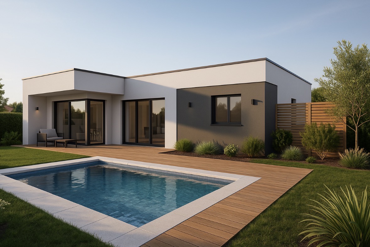 Villa contemporaine la plus appréciée de nos clients, l’architecture en L offre de multiples avantages.